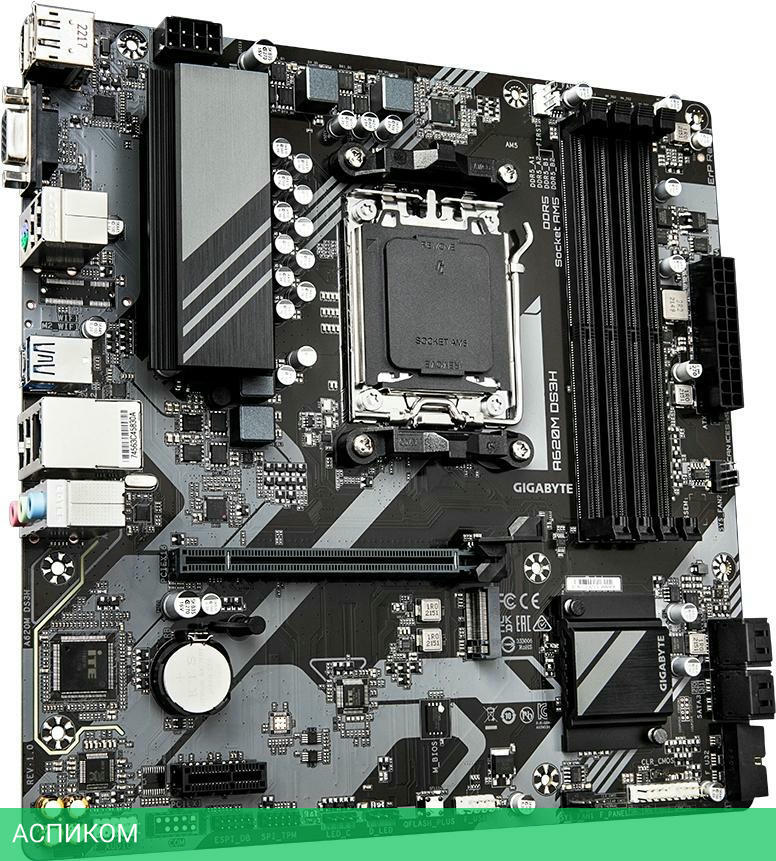 Материнская плата GigaByte A620M DS3H rev. 1.0/AM5/mATX/AMD A620/4xDDR5/4xSATA 3.0/1xM.2/8 каналов (7.1)/3x3.5 мм jack/1xDP/1x1 Gigabit/RAID/4x USB 2.0 (+2 внутренних)/1x USB 3.2 Gen1 Type-A (+2 внутренних)/1x USB 3.2 Gen1 Type-C/1x PCIe x16 (1x PCIe 4.0 x16)/1x PCIe x1 (1x PCIe 3.0 x1)/1xHDMI/1xVGA (D-Sub)/1xPS/2