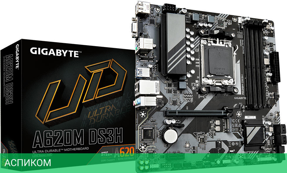 Материнская плата GigaByte A620M DS3H rev. 1.1/AM5/mATX/AMD A620/8 каналов (7.1)