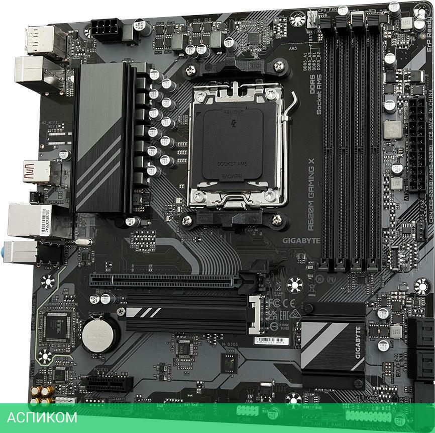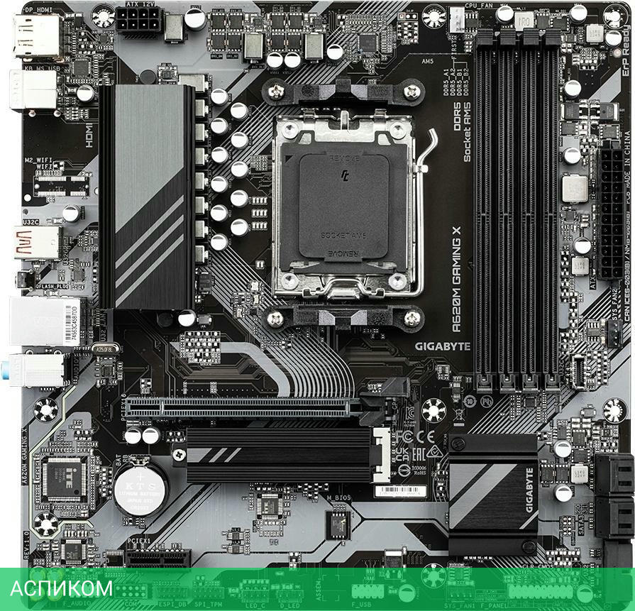 Материнская плата GigaByte A620M Gaming X DDR5 rev. 1.0/AM5/mATX/AMD A620/4xDDR5/4xSATA 3.0/1xM.2/8 каналов (7.1)/3x3.5 мм jack/1xDP/1x1 Gigabit/RAID/2x USB 2.0 (+2 внутренних)/2x USB 3.2 Gen1 Type-A (+2 внутренних)/1x USB 3.2 Gen2 Type-A/1x USB 3.2 Gen1 Type-C (+ 1 внутренних)/1x PCIe x16 (1x PCIe 4.0 x16)/1x PCIe x1 (1x PCIe 3.0 x1)/1xHDMI/1xPS/2/RTL