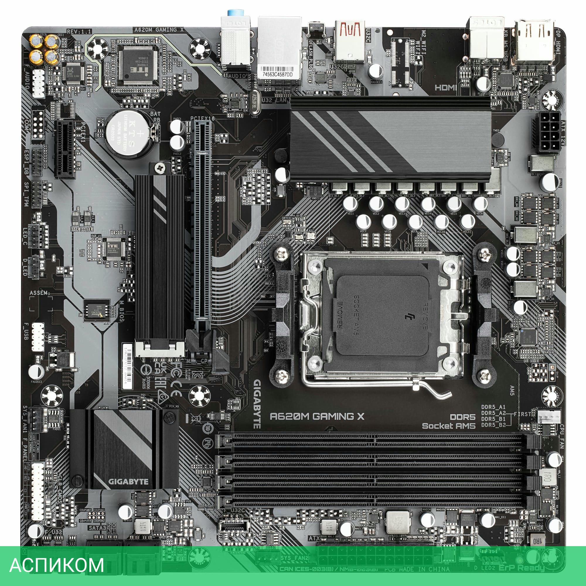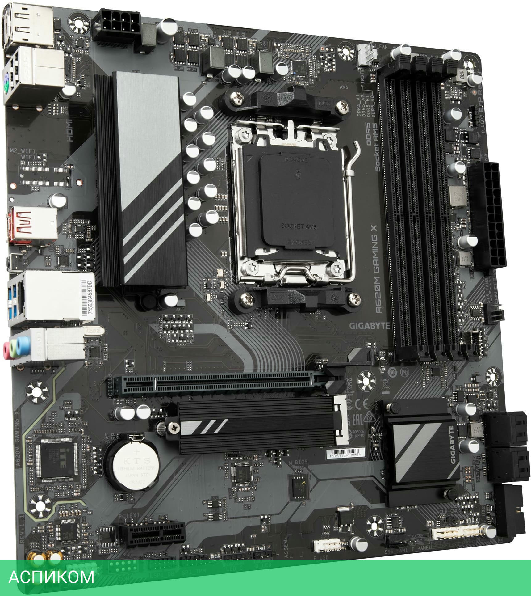 Материнская плата GigaByte A620M Gaming X rev. 1.1/AM5/mATX/AMD A620/4xDDR5/4xSATA 3.0/1xM.2/8 каналов (7.1)/3x3.5 мм jack/1xDP/1x1 Gigabit/RAID/2x USB 2.0 (+2 внутренних)/4x USB 3.2 Gen1 Type-A (+2 внутренних)/1x USB 3.2 Gen2 Type-A/1x USB 3.2 Gen1 Type-C (+ 1 внутренних)/1x PCIe x16 (1x PCIe 4.0 x16)/1x PCIe x1 (1x PCIe 3.0 x1)/1xHDMI/1xPS/2