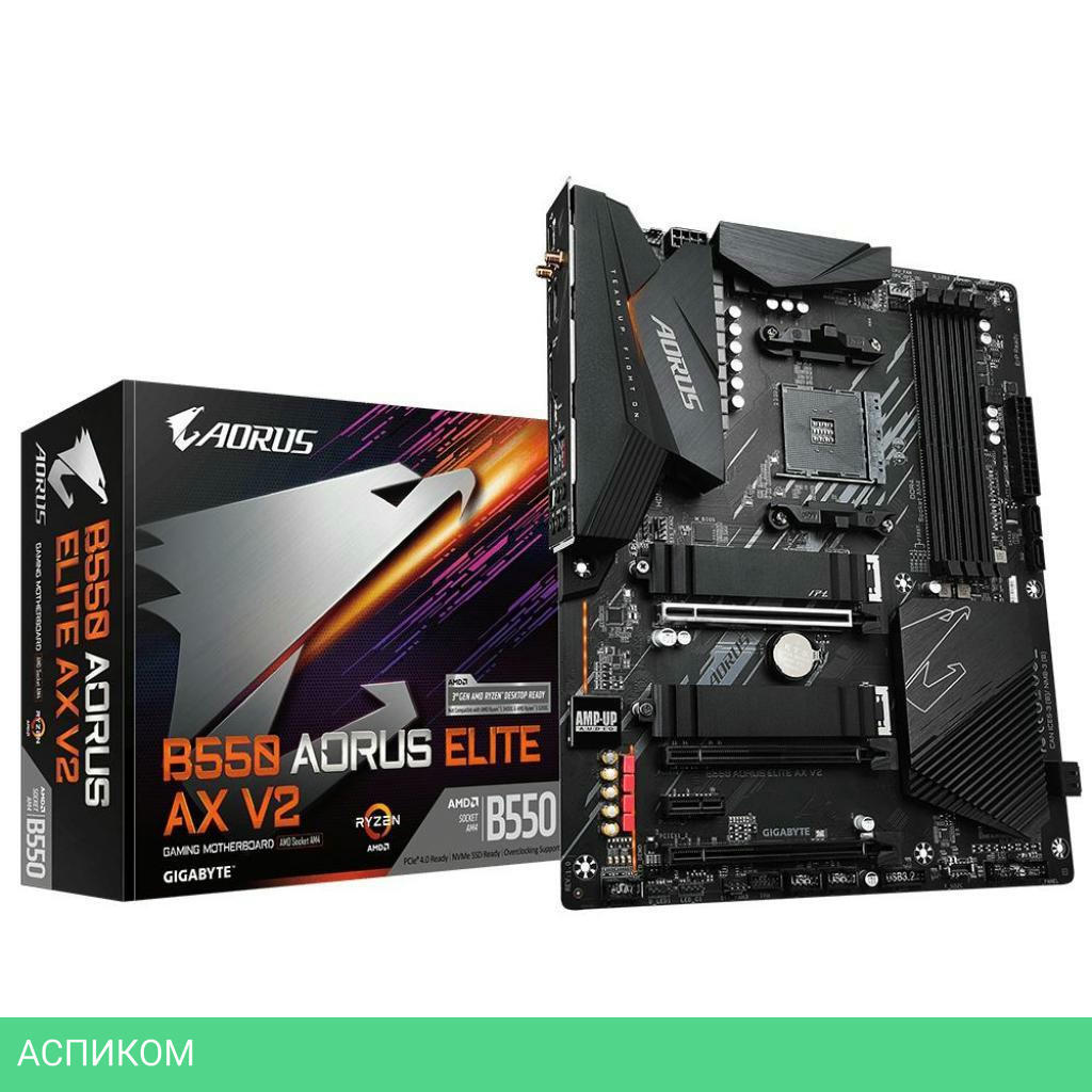Материнская плата GigaByte B550 Aorus Elite AX V2 rev. 1.0/AM4/ATX/AMD B550/4xDDR4/4xSATA 3.0/2xM.2/Realtek ALC1200/5x3.5 мм jack/1xDP/RAID/1xHDMI/BT, WiFi