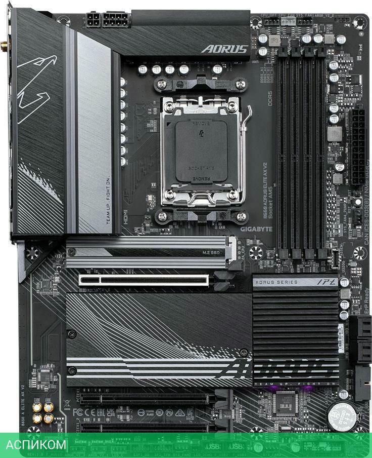 Материнская плата GigaByte B650 Aorus Elite AX V2 rev. 1.0/AM5/ATX/AMD B650/4xDDR5/4xSATA 3.0/3xM.2/8 каналов (7.1)/3x3.5 мм jack/1xDP/1x2.5 Gigabit/RAID/2x USB 2.0/1xHDMI/BT, WiFi