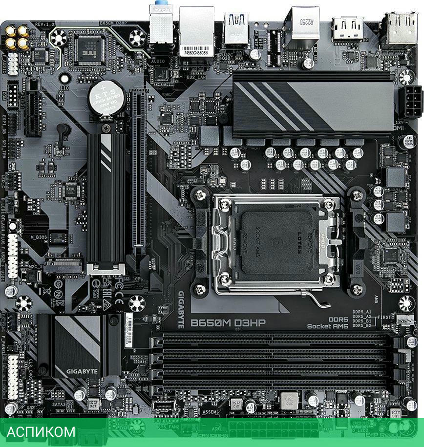 Материнская плата GigaByte B650M D3HP DDR5/AM5/mATX/AMD B650/4xDDR5/4xSATA 3.0/2xM.2/8 каналов (7.1)/3x3.5 мм jack/2xDP/1x2.5 Gigabit/RAID/2x USB 2.0 (+2 внутренних)/3x USB 3.2 Gen1 Type-A (+1 внутренних)/1x USB 3.2 Gen1 Type-C (+ 1 внутренних)/1x PCIe x16/1x PCIe x1/1xHDMI