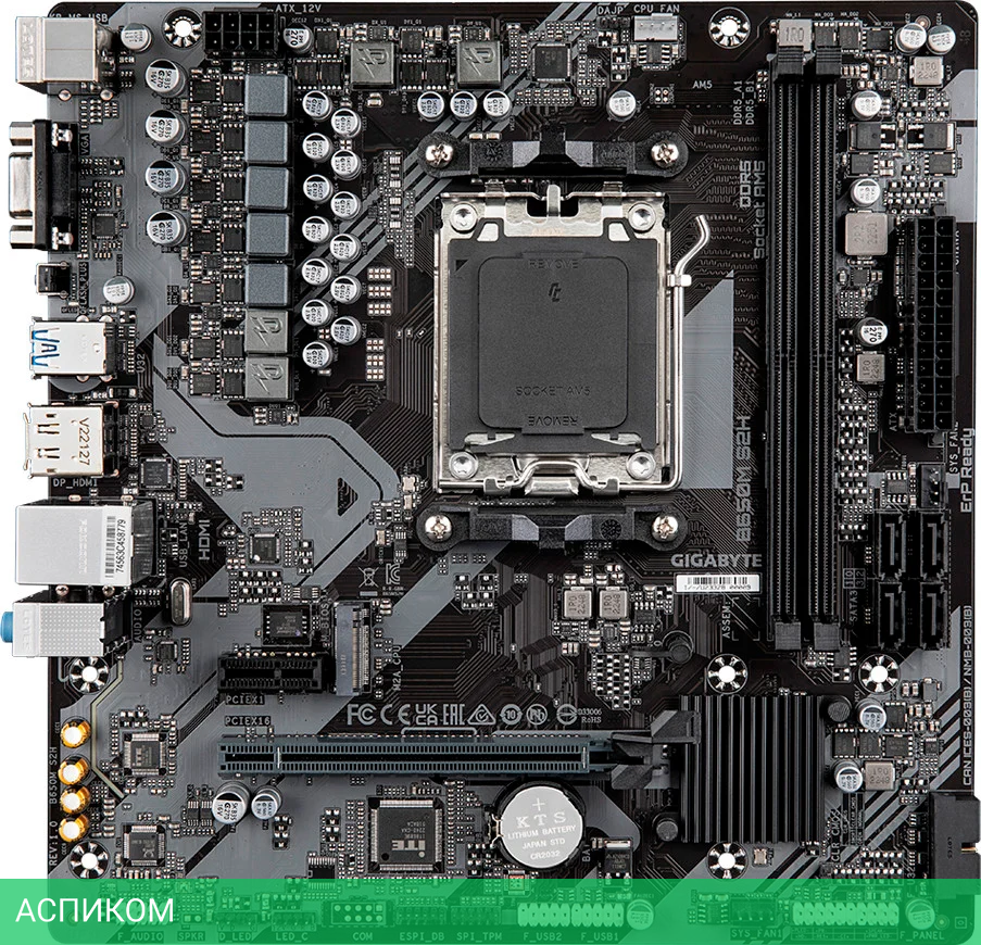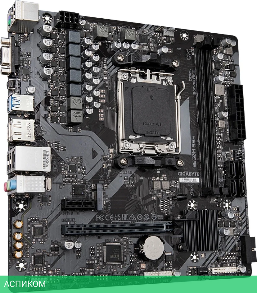 Материнская плата GigaByte B650M S2H DDR5 rev. 1.2/AM5/mATX/AMD B650/2xDDR5/4xSATA 3.0/1xM.2/8 каналов (7.1)/3x3.5 мм jack/1xDP/1x1 Gigabit/RAID/4x USB 2.0 (+2 внутренних)/2x USB 3.2 Gen1 Type-A (+1 внутренних)/1x PCIe x16/1x PCIe x1/1xHDMI/1xPS/2