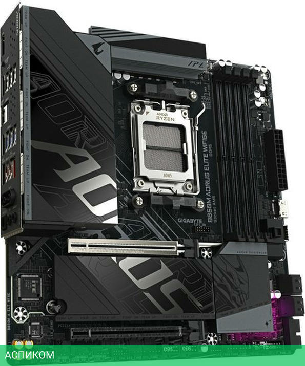 Материнская плата GigaByte B850M Aorus Elite WIFI6E rev. 1.1/AM5/mATX/AMD B850/1xDDR5/4xSATA 3.0/2xM.2/Realtek ALC1200/8 каналов (7.1)/2x3.5 мм jack/1xDP/RAID/2x USB 2.0/1x USB 3.2 Gen1 Type-A