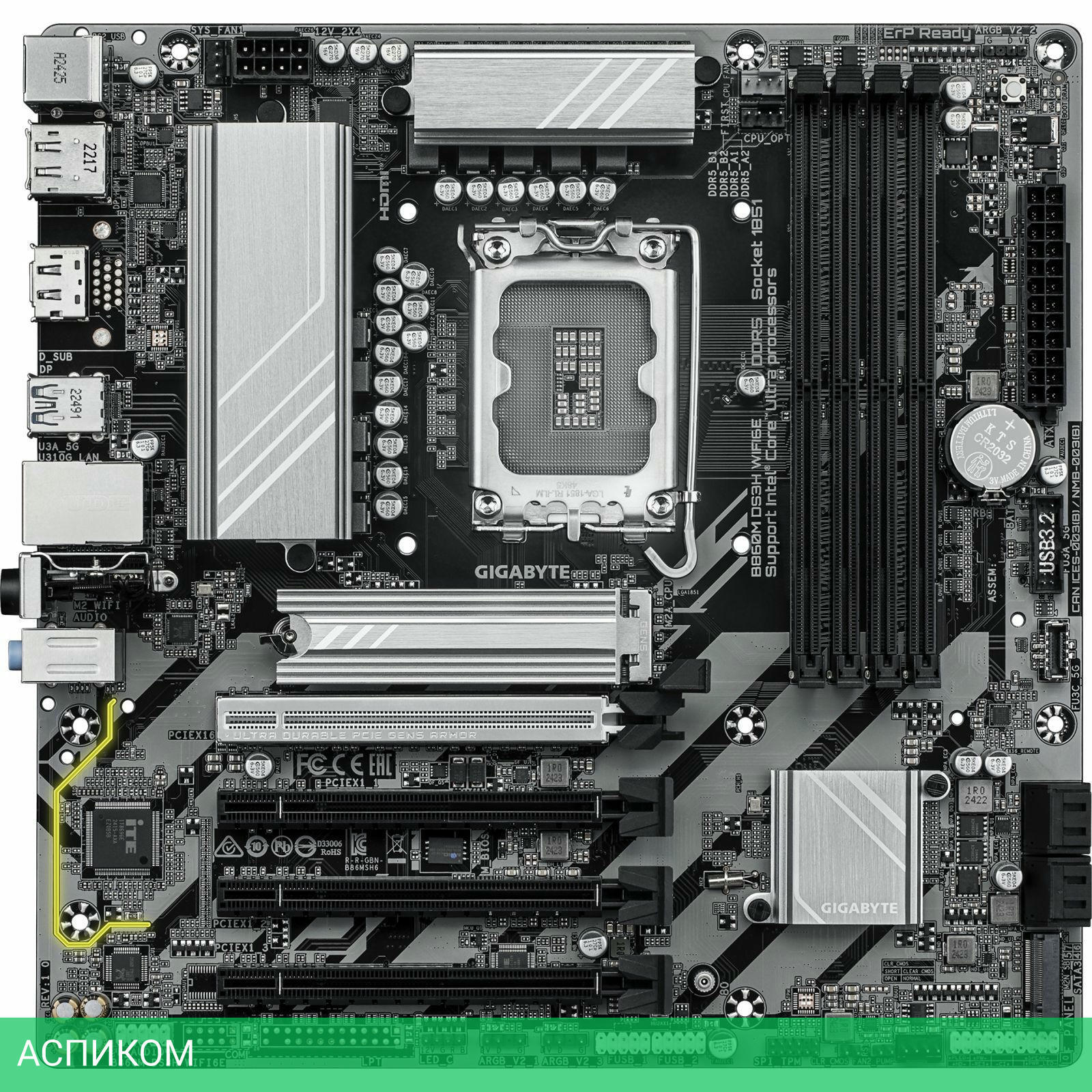 Материнская плата GigaByte B860M DS3H WIFI6E rev. 1.0/LGA1851/mATX/Intel B860/4xDDR5/4xSATA 3.0/2xM.2/8 каналов (7.1)/3x3.5 мм jack/2xDP/1x2.5 Gigabit/RAID/3x USB 2.0 (+2 внутренних)/2x USB 3.2 Gen1 Type-A (+1 внутренних)/1x USB 3.2 Gen2 Type-A/1x USB 3.2 Gen1 Type-C (внутренних)/4x PCIe x16/1xHDMI/BT, WiFi/1xPS/2