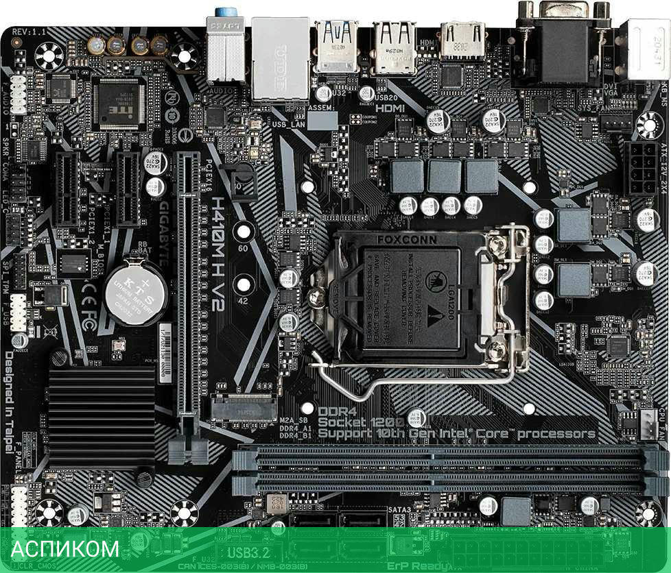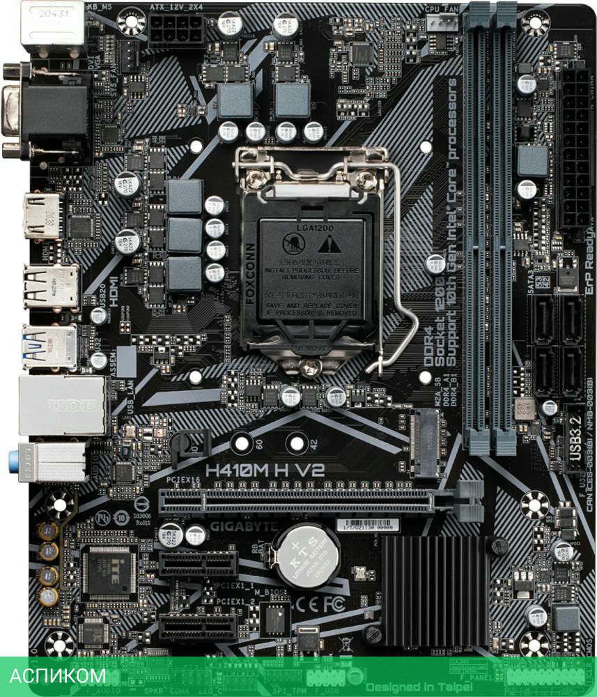 Материнская плата GigaByte H410M H V2 DDR4/LGA1200/mATX/Intel H470/2xDDR4/4xSATA 3.0/1xM.2/8 каналов (7.1)/3x3.5 мм jack/1x1 Gigabit/RAID/4x USB 2.0 (+2 внутренних)/2x USB 3.2 Gen1 Type-A (+2 внутренних)/1x PCIe x16 (1x PCIe 3.0 x16)/1x PCIe x1 (1x PCIe 3.0 x1)/1xHDMI/1xVGA (D-Sub)/1xCOM (внутр.)/1xPS/2
