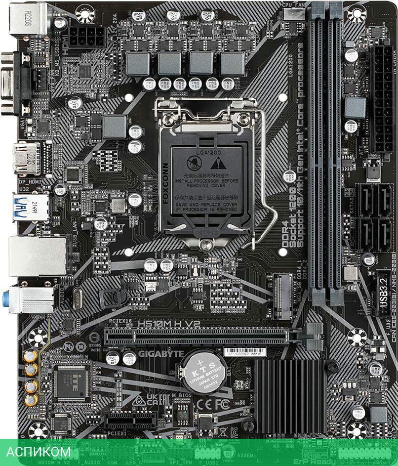 Материнская плата GigaByte H510M H V2 DDR4/LGA1200/mATX/Intel H470/2xDDR4/4xSATA 3.0/1xM.2/8 каналов (7.1)/3x3.5 мм jack/1x1 Gigabit/RAID/4x USB 2.0 (+2 внутренних)/2x USB 3.2 Gen1 Type-A (+2 внутренних)/1x PCIe x16 (1x PCIe 3.0 x16)/1x PCIe x1 (1x PCIe 3.0 x1)/1xHDMI/1xVGA (D-Sub)/1xCOM (внутр.)/1xPS/2