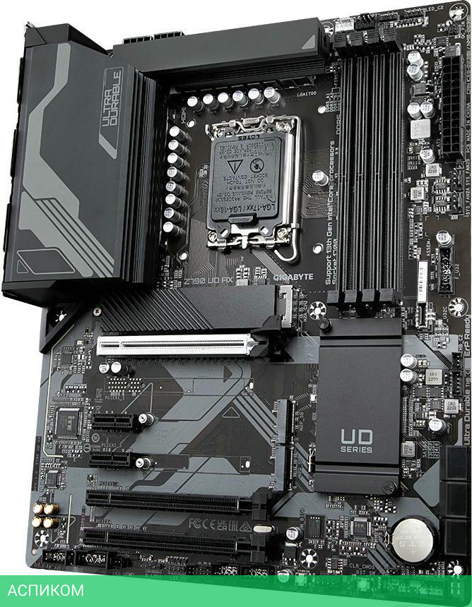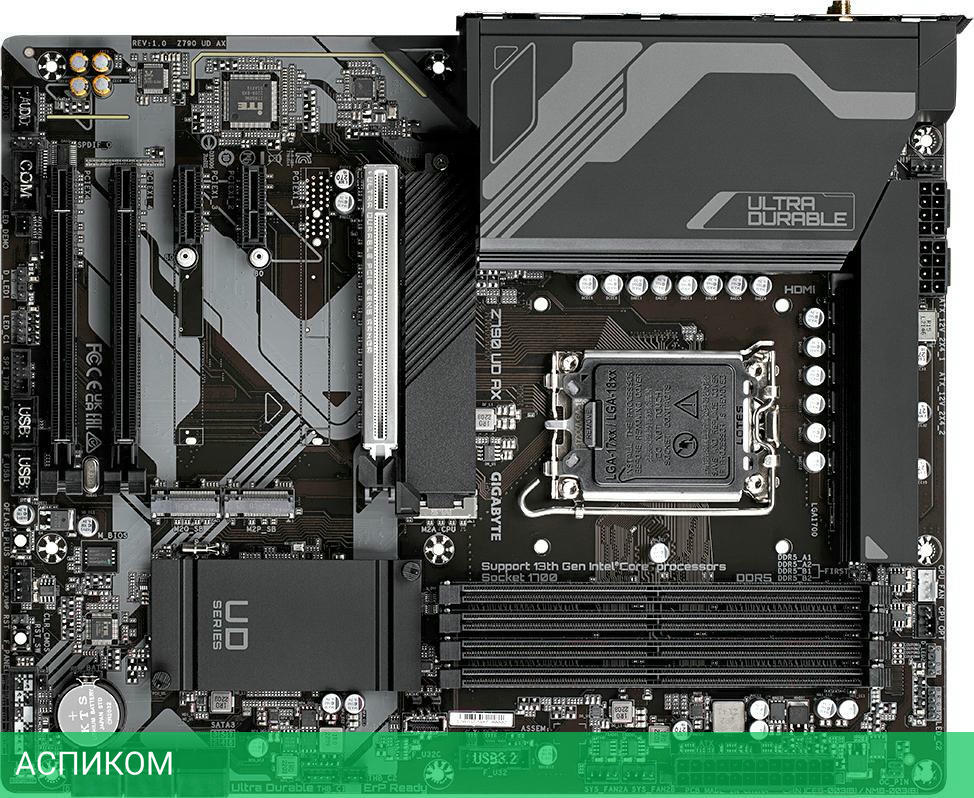 Материнская плата GigaByte Z790 UD AX 1.2 DDR5/LGA1700/ATX/Intel Z790/4xDDR5/6xSATA 3.0/3xM.2/8 каналов (7.1)/3x3.5 мм jack/1xDP/1x2.5 Gigabit/RAID/4x USB 2.0 (+4 внутренних)/4x USB 3.2 Gen1 Type-A (+2 внутренних)/1x USB 3.2 Gen2 Type-A/1x USB 3.2 Gen1 Type-C/1x USB 3.2 Gen 2x2/3x PCIe x16 (1x PCIe 5.0 x16, 1x PCIe 4.0 x4, 1x PCIe 3.0 x1)/2x PCIe x1/1xHDMI/BT, WiFi/1хWIFI slot/1xCOM (внутр.)