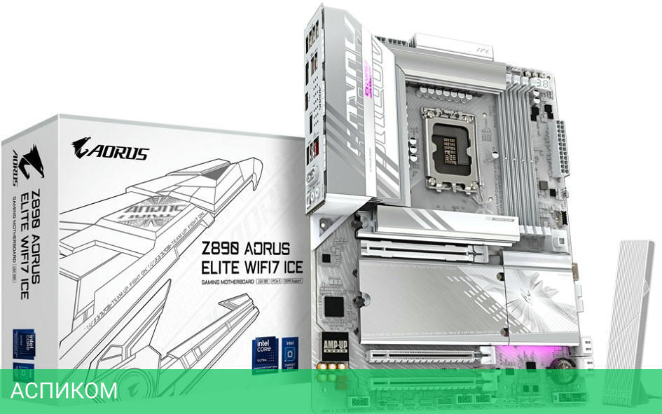 Материнская плата GigaByte Z890 Aorus Elite WIFI7 Ice rev. 1.0/LGA1851/ATX/Intel Z890/4xDDR5/4xSATA 3.0/4xM.2/Realtek ALC1220/8 каналов (7.1)/2x3.5 мм jack/1xDP/1x2.5 Gigabit/RAID/6x USB 2.0 (+2 внутренних)/3x USB 3.2 Gen1 Type-A (+1 внутренних)/2x USB 3.2 Gen2 Type-A/1x USB 3.2 Gen2 Type-C/1x USB4/3x PCIe x16 (1x PCIe 5.0 x16, 2x PCIe 4.0 x4)/1xHDMI/BT, WiFi