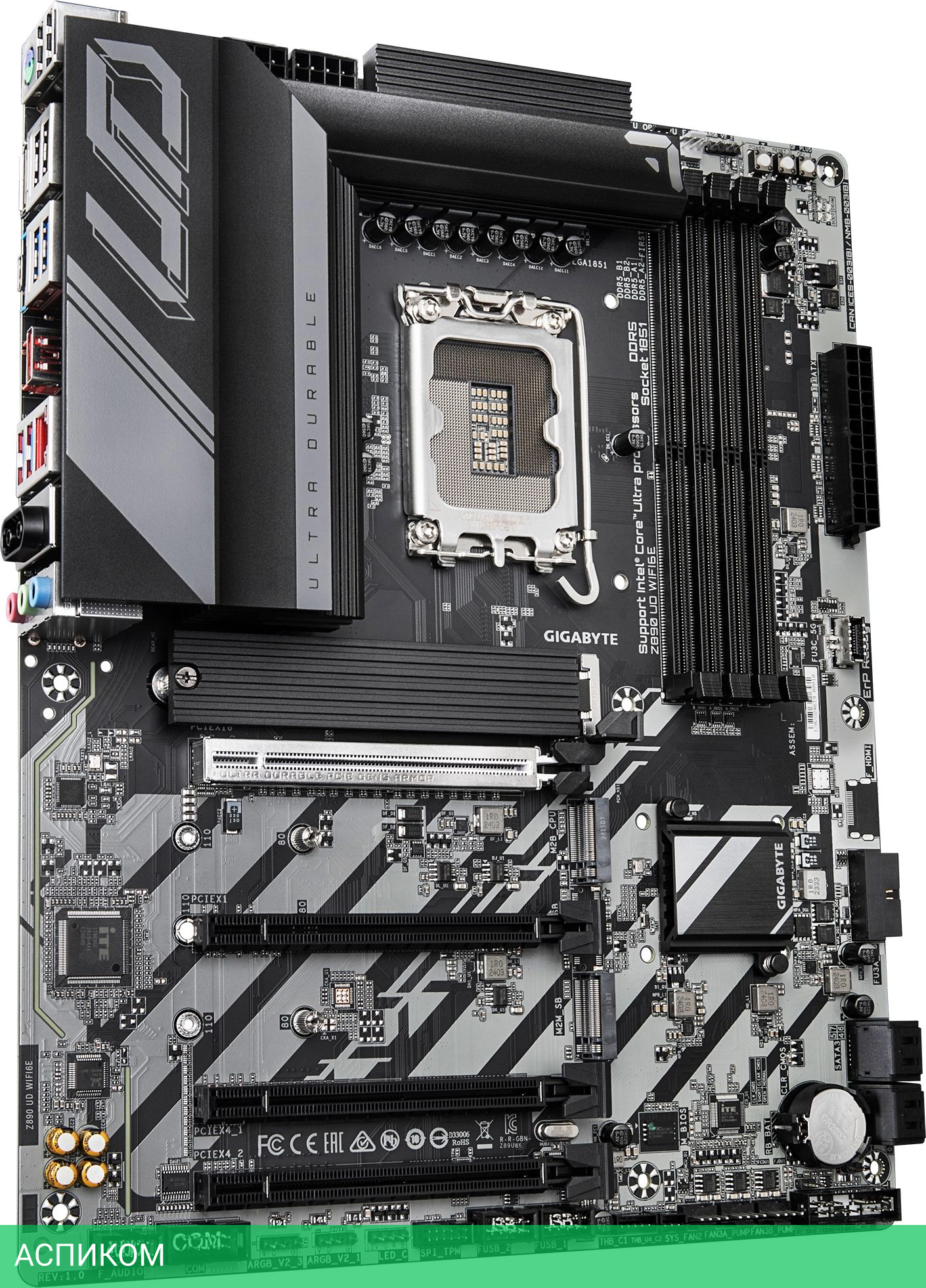 Материнская плата Gigabyte Z890 UD WIFI6E rev. 1.0/LGA1851/ATX/Intel Z890/4xDDR5, DDR5 CUDIMM/4xSATA 3.0/3xM.2/8 каналов (7.1)/3x3.5 мм jack/1xDP/1x2.5 Gigabit/RAID/4x USB 2.0 (+2 внутренних)/4x USB 3.2 Gen1 Type-A (+1 внутренних)/1x USB 3.2 Gen2 Type-A/1x USB 3.2 Gen1 Type-C (внутренних)/1x USB4/4x PCIe x16/BT, WiFi/1xCOM (внутр.)/1xPS/2