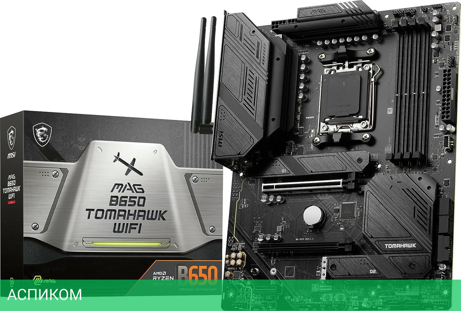 Материнская плата MSI MAG B650 Tomahawk WiFi/AM5/ATX/AMD B650/4xDDR5/6xSATA 3.0/3xM.2/Realtek ALC4080/8 каналов (7.1)/5x3.5 мм jack/1xDP/1x2.5 Gigabit/RAID/2x USB 2.0 (+4 внутренних)/4x USB 3.2 Gen1 Type-A (+2 внутренних)/3x USB 3.2 Gen2 Type-A/1x USB 3.2 Gen2 Type-C/1x USB 3.2 Gen 2x2/2x PCIe x16/1x PCIe x1/1xHDMI/BT, WiFi/1хWIFI slot