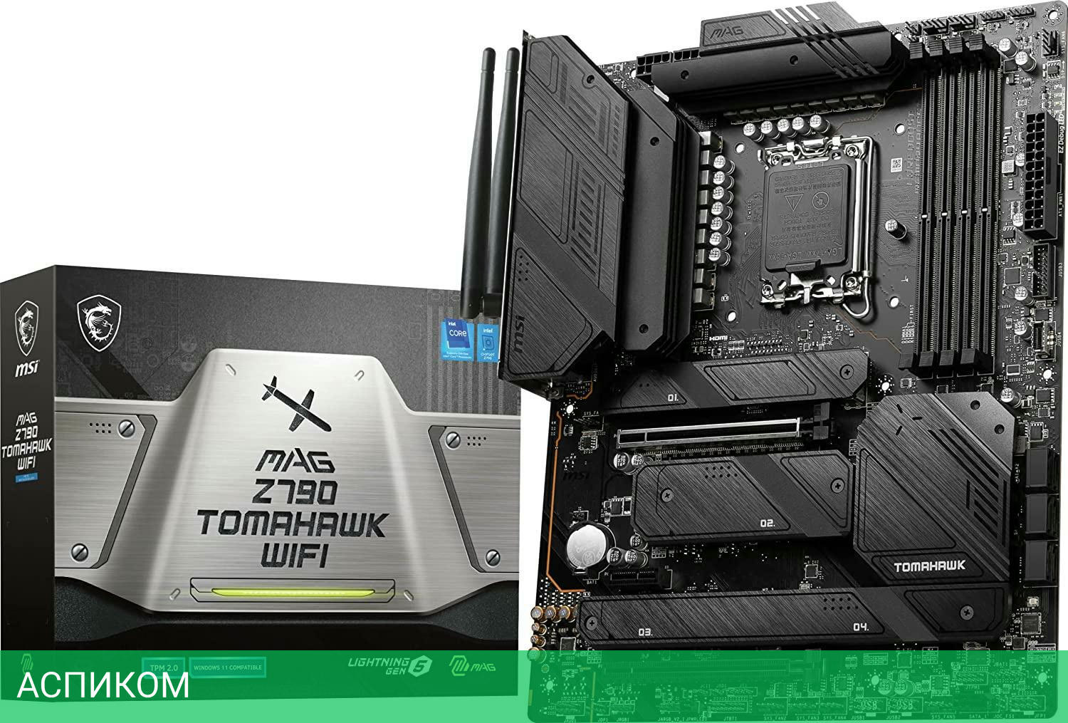 Материнская плата MSI MAG Z790 Tomahawk WIFI DDR5/LGA1700/ATX/Intel Z790/4xDDR5/7xSATA 3.0/4xM.2/Realtek ALC4080/8 каналов (7.1)/5x3.5 мм jack/1xDP/1x2.5 Gigabit/RAID/4x USB 2.0 (внутренних)/4x USB 3.2 Gen1 Type-A (+2 внутренних)/4x USB 3.2 Gen2 Type-A/1x USB 3.2 Gen2 Type-C (+1 внутренних)/1x USB 3.2 Gen 2x2/2x PCIe x16 (1x PCIe 5.0 x16, 1x PCIe 4.0 x4)/1x PCIe x1 (1x PCIe 3.0 x1)/1xHDMI/BT, WiFi/1хWIFI slot