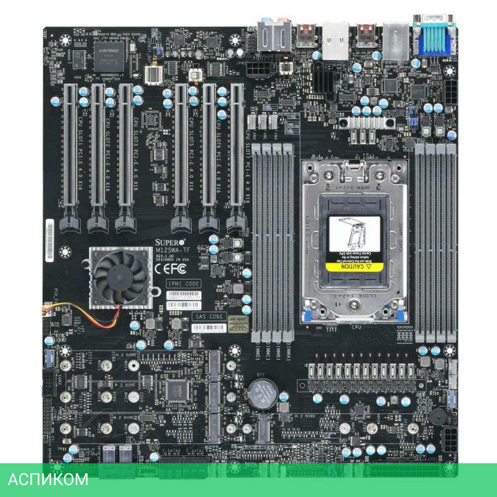 Материнская плата SuperMicro MBD-M12SWA-TF-B/SP3/eATX/AMD WRX80/8xDDR4/4xSATA 3.0/4xM.2/Realtek ALC4050H+ALC1220/8 каналов (7.1)/1x USB 2.0 (внутренних)