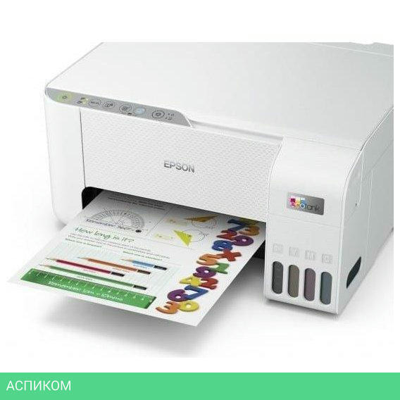 МФУ Epson L3256 A4 WiFi USB белый (C11CJ67421)/струйный/цветной/A4 (210x297 мм)/33стр/мин (ч/б)/15стр/мин (цв.)/1200 x 2400 dpi/Wi-Fi/белый