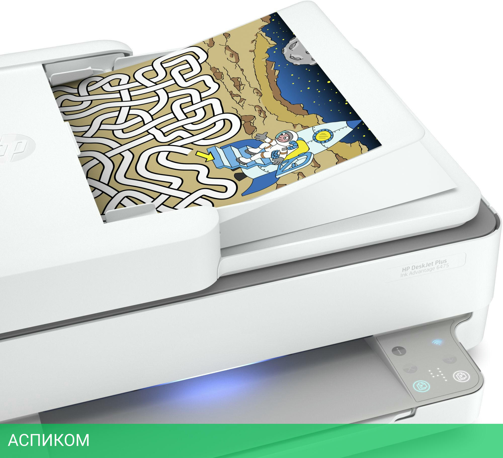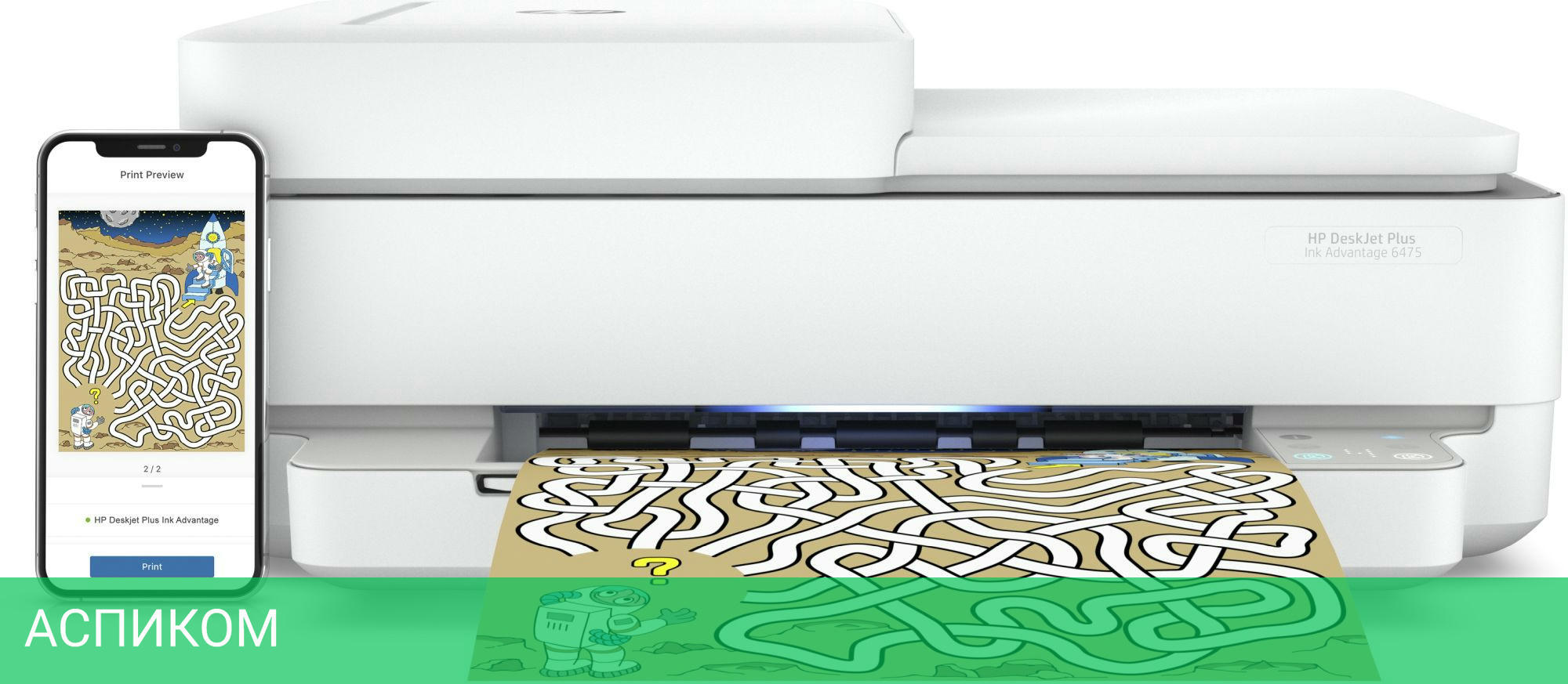 МФУ HP DeskJet Plus Ink Advantage 6475 (5SD78C)/струйный/цветной/A4 (210x297 мм)/20стр/мин (ч/б)/17стр/мин (цв.)/1200 x 1200 dpi/Duplex/Wi-Fi/белый