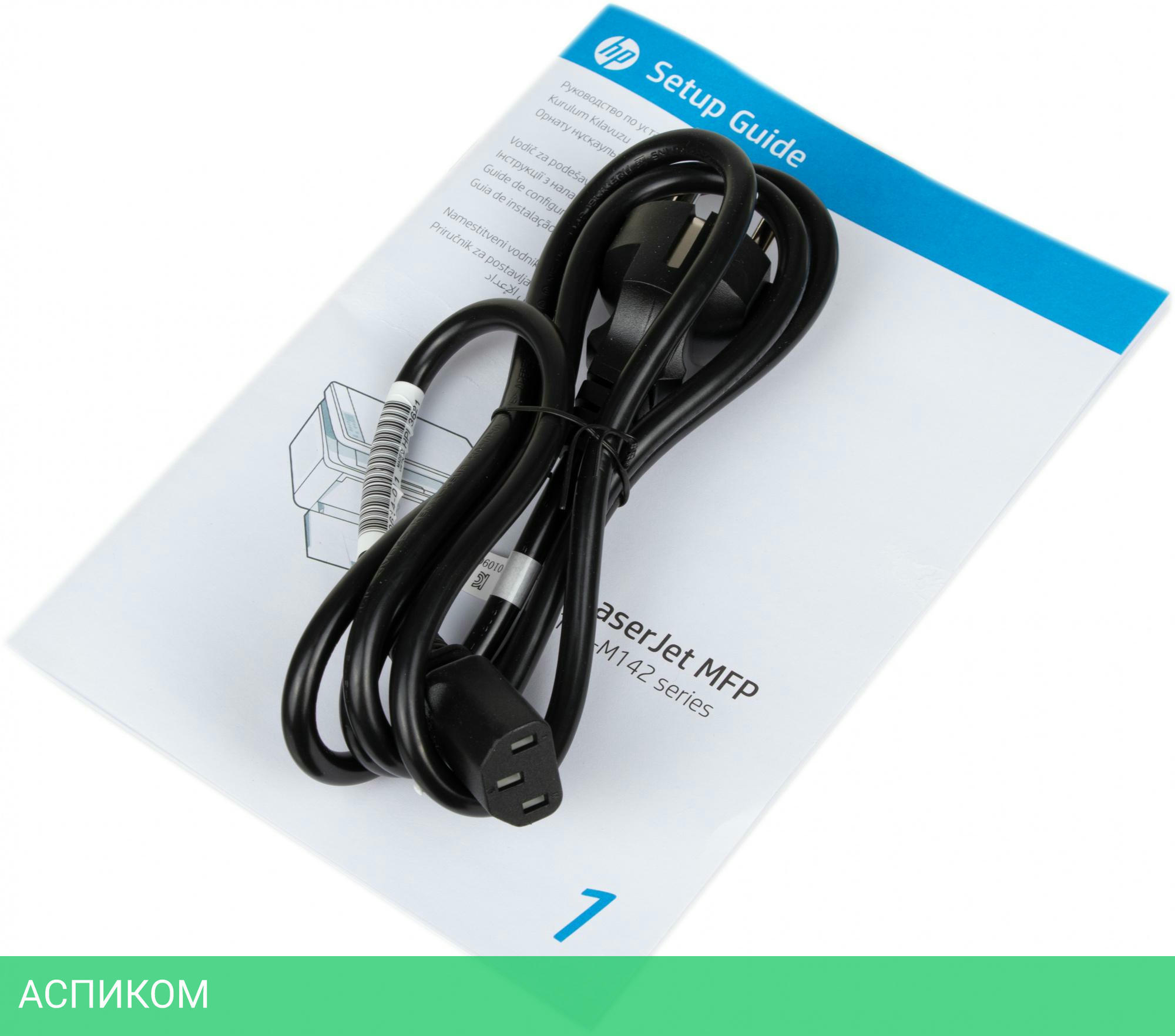 МФУ HP, кабель питания, картридж HP LaserJet с черным тонером, плакат с инструкциями по настройке, справочное руководство, руководство по гарантии