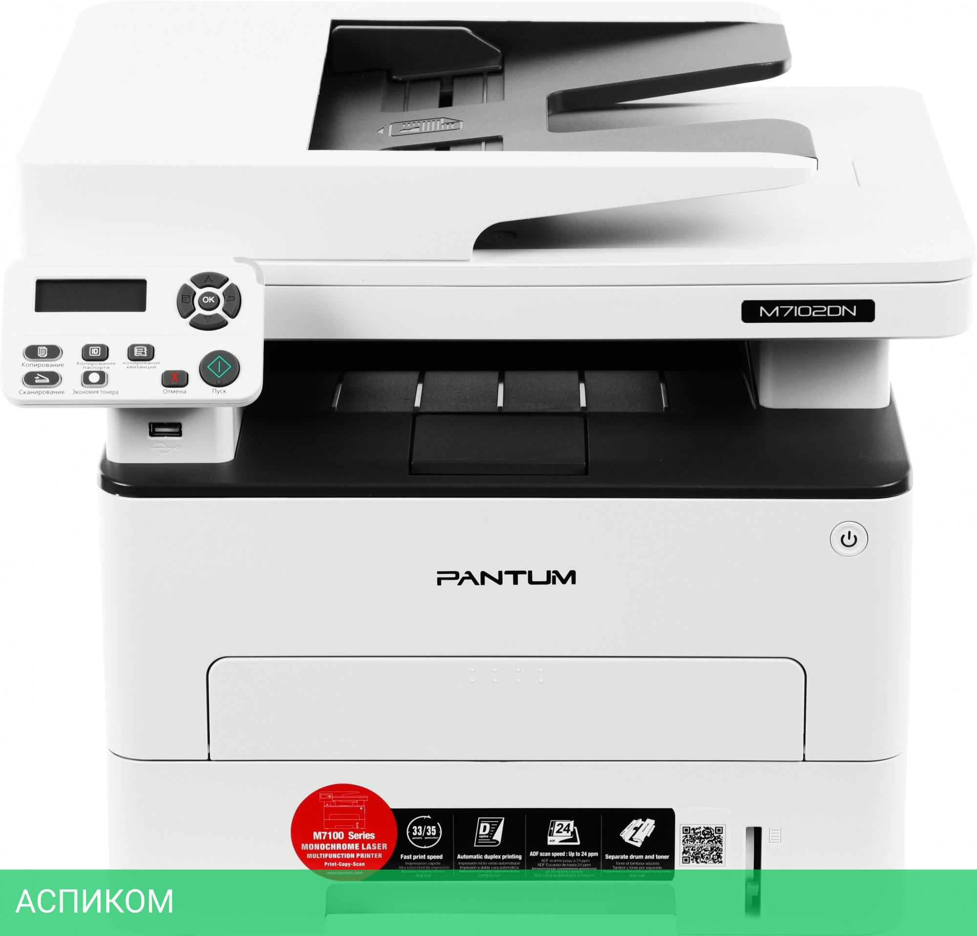 МФУ Pantum M7102DN/лазерный/черно-белый/A4 (210x297 мм)/22стр/мин (ч/б)/1200 x 1200 dpi/Duplex/белый