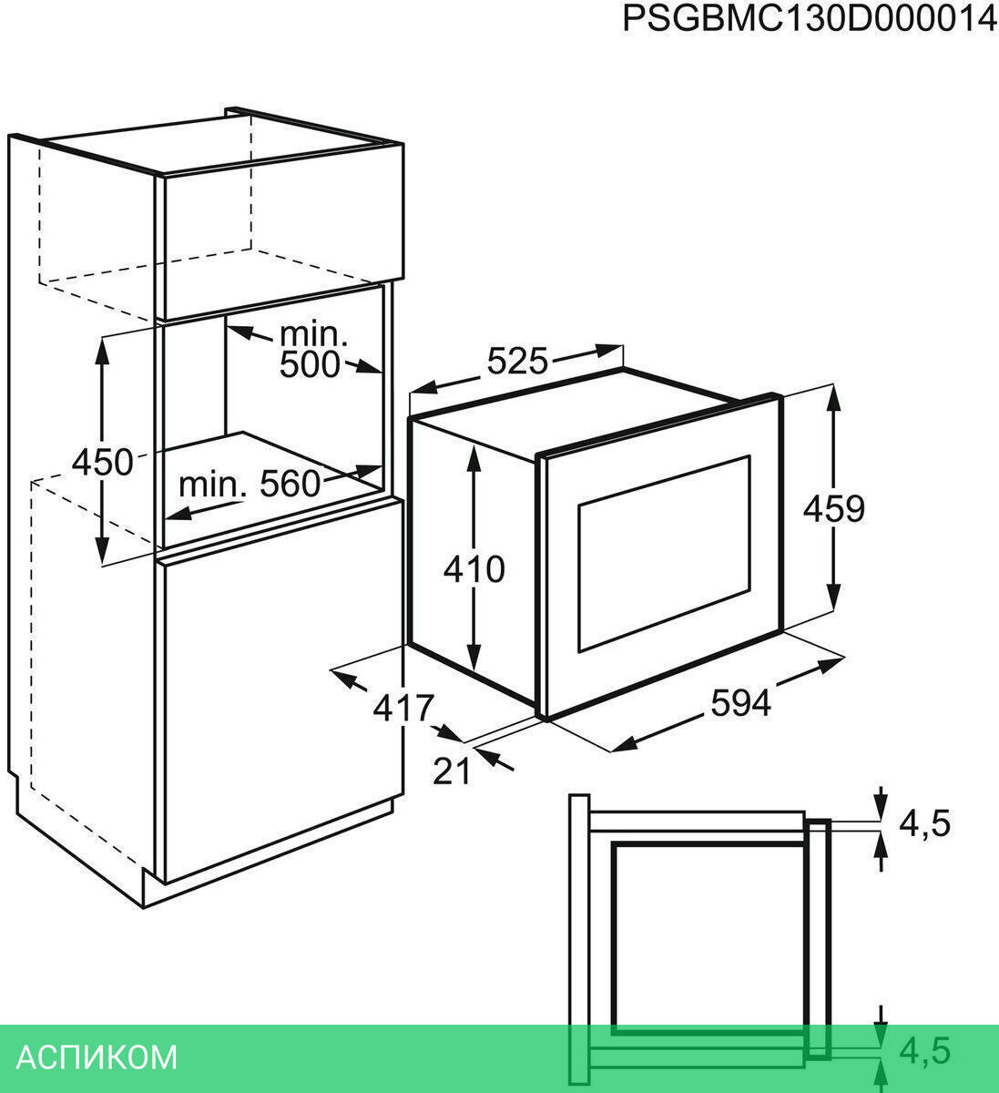 встраиваемая / черный / микроволны (соло) / 900.0 / 26.0 / 325.0 / 900.0 / сенсорное