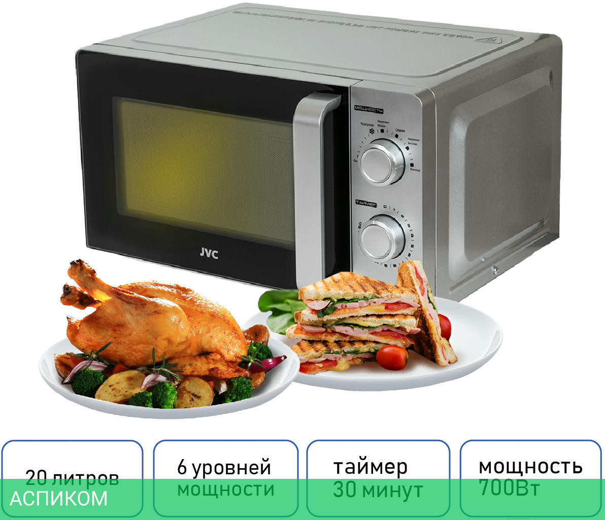 отдельностоящая / микроволны (соло) / 700.0 / 20.0 / серебристый / 245.0 / 1100.0 / механическое