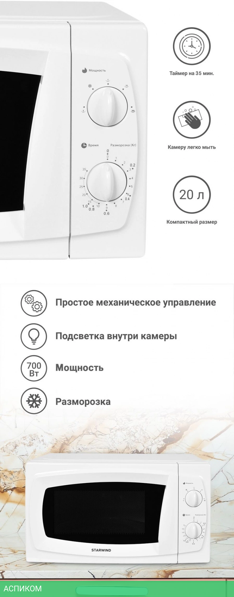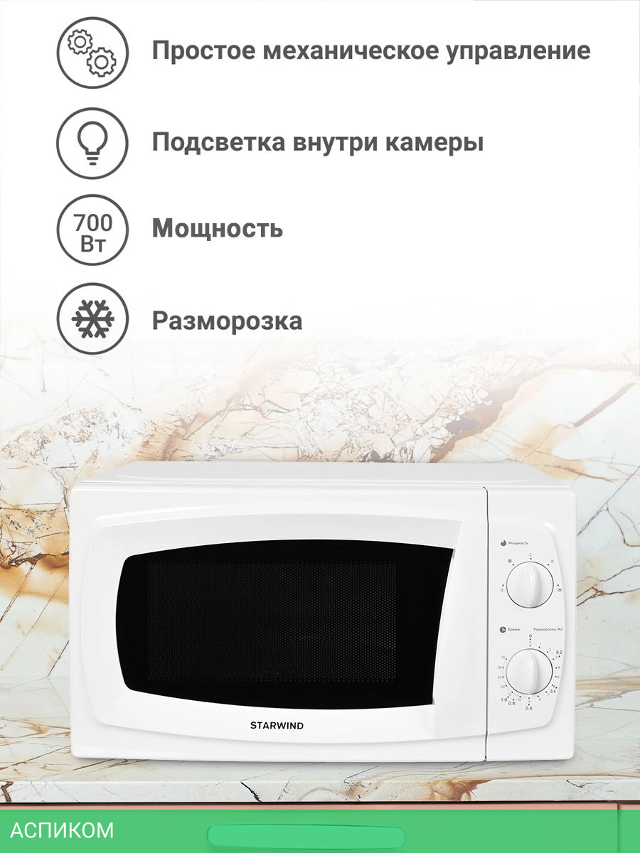 отдельностоящая / белый / микроволны (соло) / 700.0 / 20.0 / 255.0 / 1050.0 / механическое