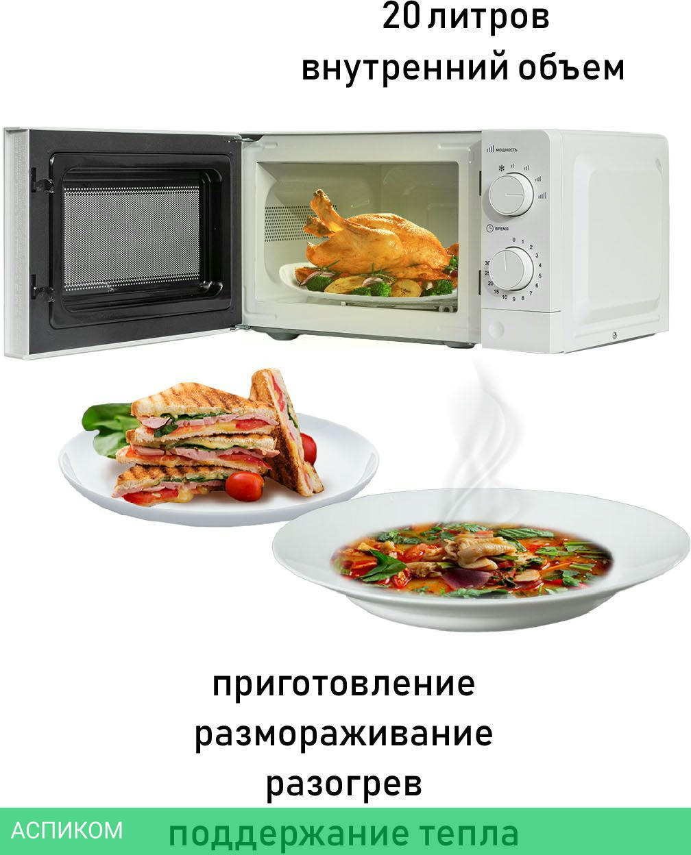 отдельностоящая / белый / микроволны (соло) / 700.0 / 20.0 / 245.0 / 1100.0 / механическое