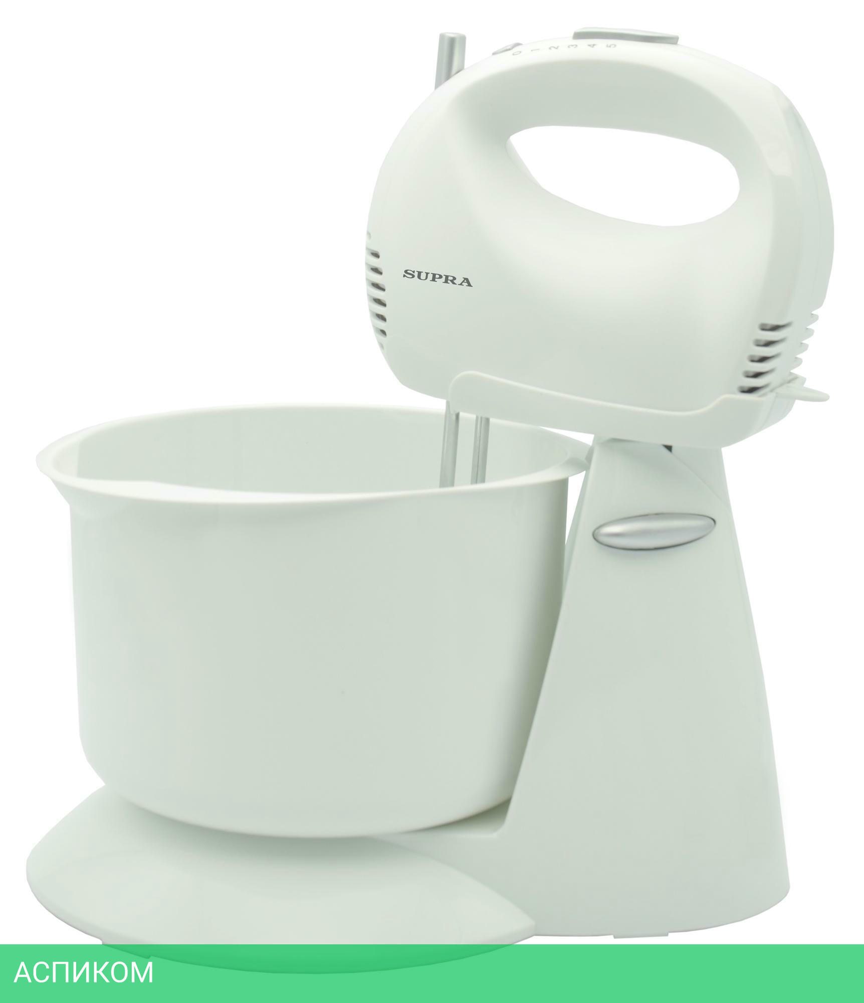 миксер, чаша с подставкой, венчики для взбивания, крюки для замешивания