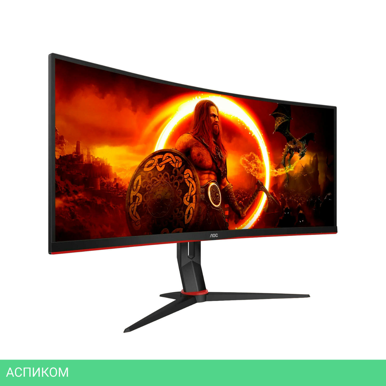 Монитор AOC CU34G2XP/BK/VA/34″/3440x1440/180Hz/матовый/178гр/178гр/1ms/DisplayPort/HDMI/USB Type-A/Adaptive-Sync/AMD FreeSync Premium/черный/красный