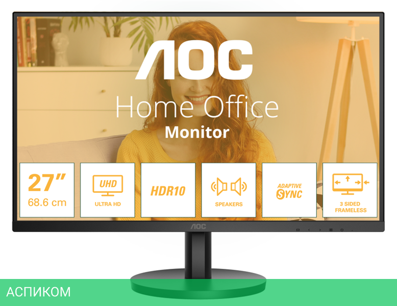Монитор AOC U27B3A/IPS/27″/3840x2160/60Hz/4ms/350cd/черный