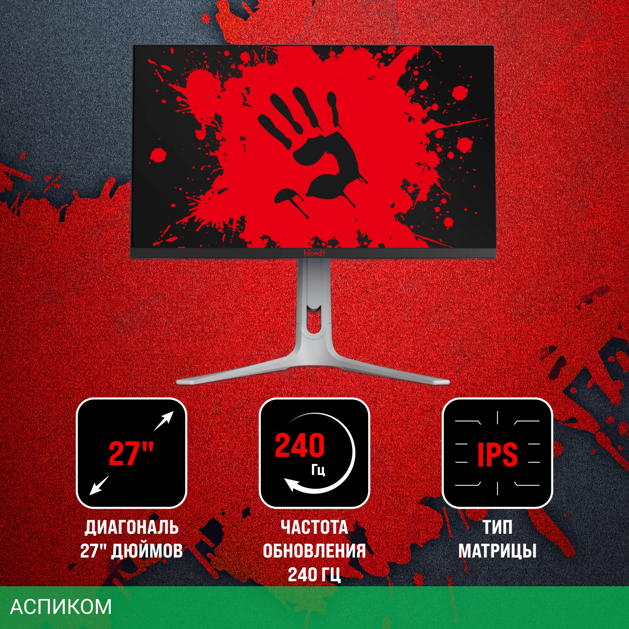 Монитор Bloody MN272Q светло-серый/IPS/27″/16:9/2560x1440/240Hz/матовый/178гр/178гр/1ms/DisplayPort/Adaptive-Sync/AMD FreeSync/NVIDIA G-Sync/400cd/серый