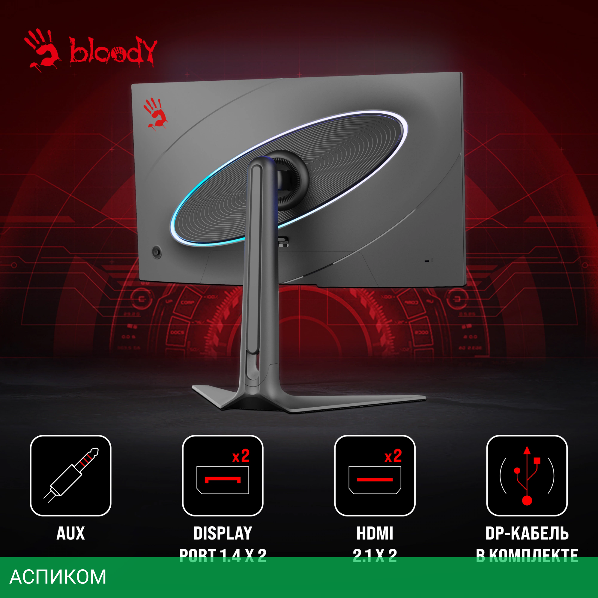 Монитор Bloody MN272Q темно-серый/IPS/27″/16:9/2560x1440/240Hz/матовый/178гр/178гр/1ms/DisplayPort/Adaptive-Sync/AMD FreeSync/NVIDIA G-Sync/400cd/темно-серый