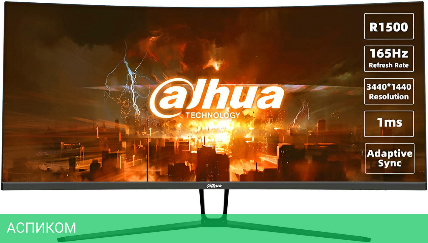 Монитор Dahua DHI-LM34-E330C черный/VA/34″/16:9/3440x1440/165Hz/Curved/1500R/матовый/178гр/178гр/1ms/DisplayPort/HDMI/350cd/черный