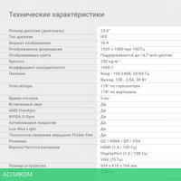 Digma Progress 24P501F – эргономичный монитор для работы и игр с диагональю экрана 24 дюйма и разрешением Full HD. Дисплей создан на основе IPS матрицы. Она обладает широким цветовым охватом и точной реалистичной цветопередачей независимо от угла обзора. Частота обновления экрана составляет 100 Гц, поэтому такое устройство могут использовать не только офисные сотрудники, но и геймеры. Высокая «герцовка» позволяет добиться плавной передачи изображения без задержек и смазываний. Поддержка технологий AMD FreeSync и Adaptive Sync придает геймплею дополнительную реалистичность: кадры в динамичных шутерах и других экшенах отображаются без рывков и искажений.