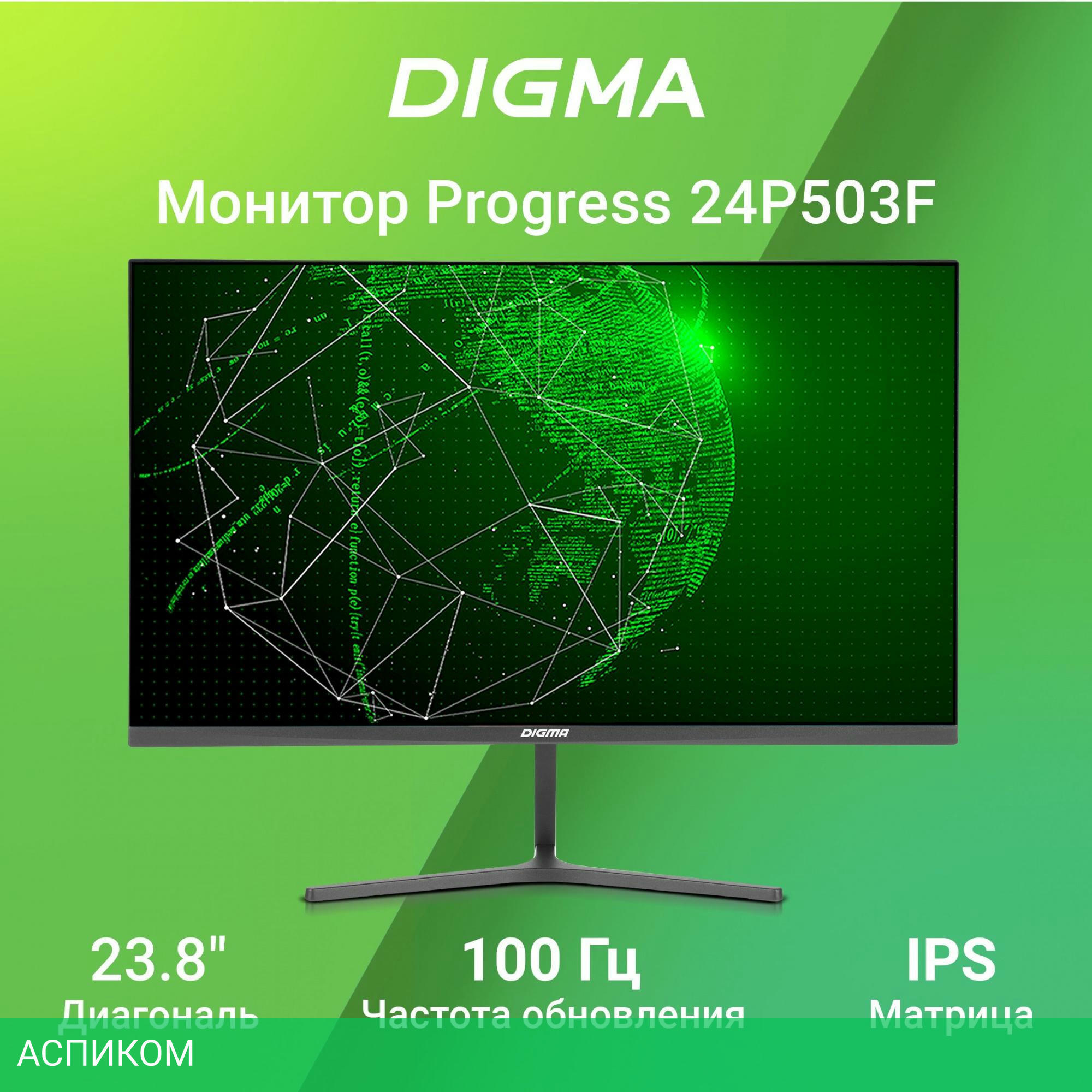 Монитор Digma Progress 24P503F темно-серый (DM24SB04)/IPS/23.8″/16:9/1920x1080/100Hz/матовый/178гр/178гр/5ms/DisplayPort/D-Sub (VGA)/HDMI/250cd/темно-серый