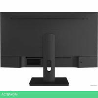 27-дюймовый экран имеет разрешение Full HD (1920x1080 пикселей). Он позволит с удобством работать в нескольких окнах программ одновременно или просматривать медиафайлы в высоком качестве. IPS-матрица имеет контрастность 1000:1, обеспечивая точную и комфортную глазу цветопередачу. Пиковая яркость 250 кд/м² и угол обзора 178° исключают искажение цветов в различных условиях.