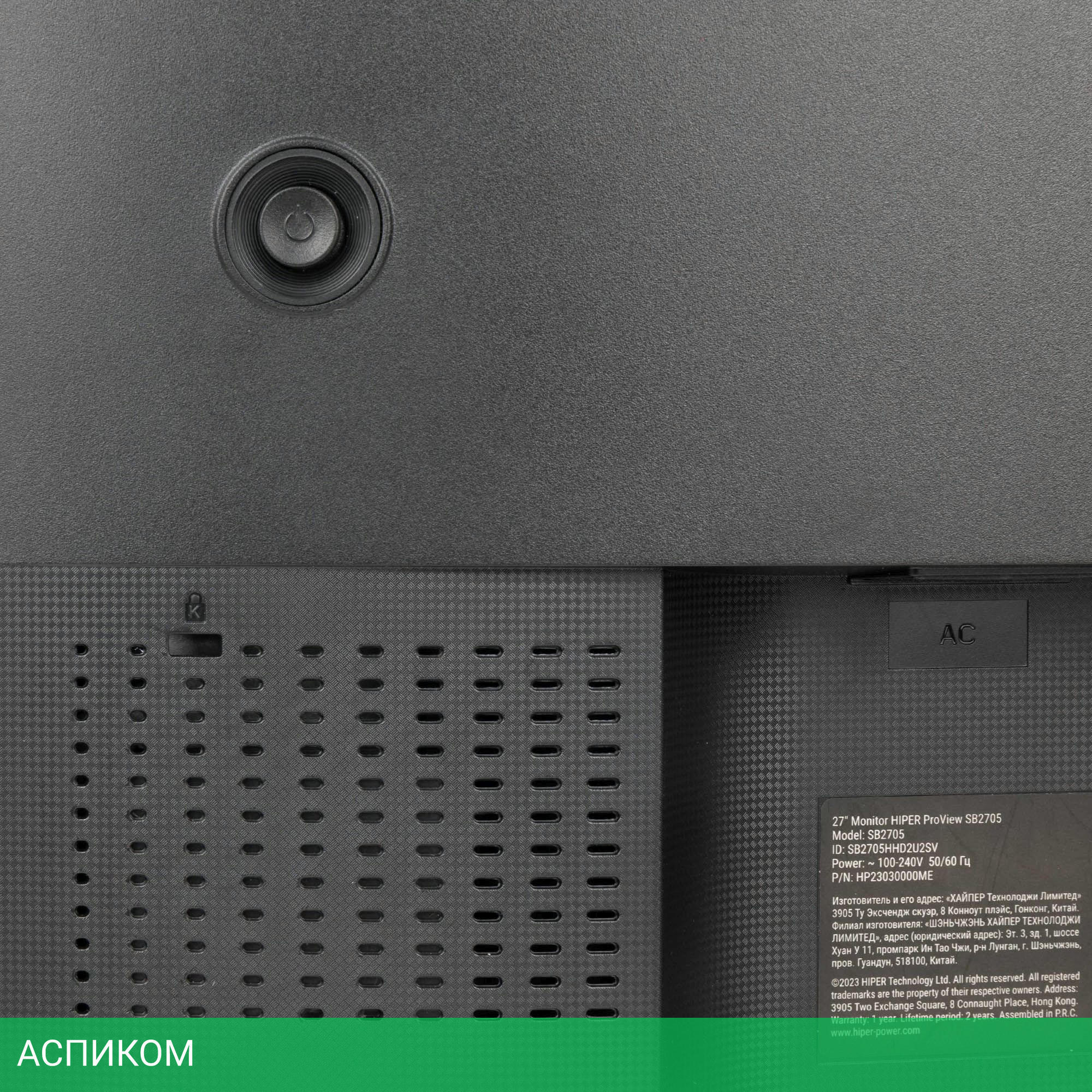 Монитор Hiper SB2705 черный (SB2705HHD2U2SV)/IPS/27″/16:9/2560x1440/75Hz/матовый/5ms/DisplayPort/HDMI/350cd/черный