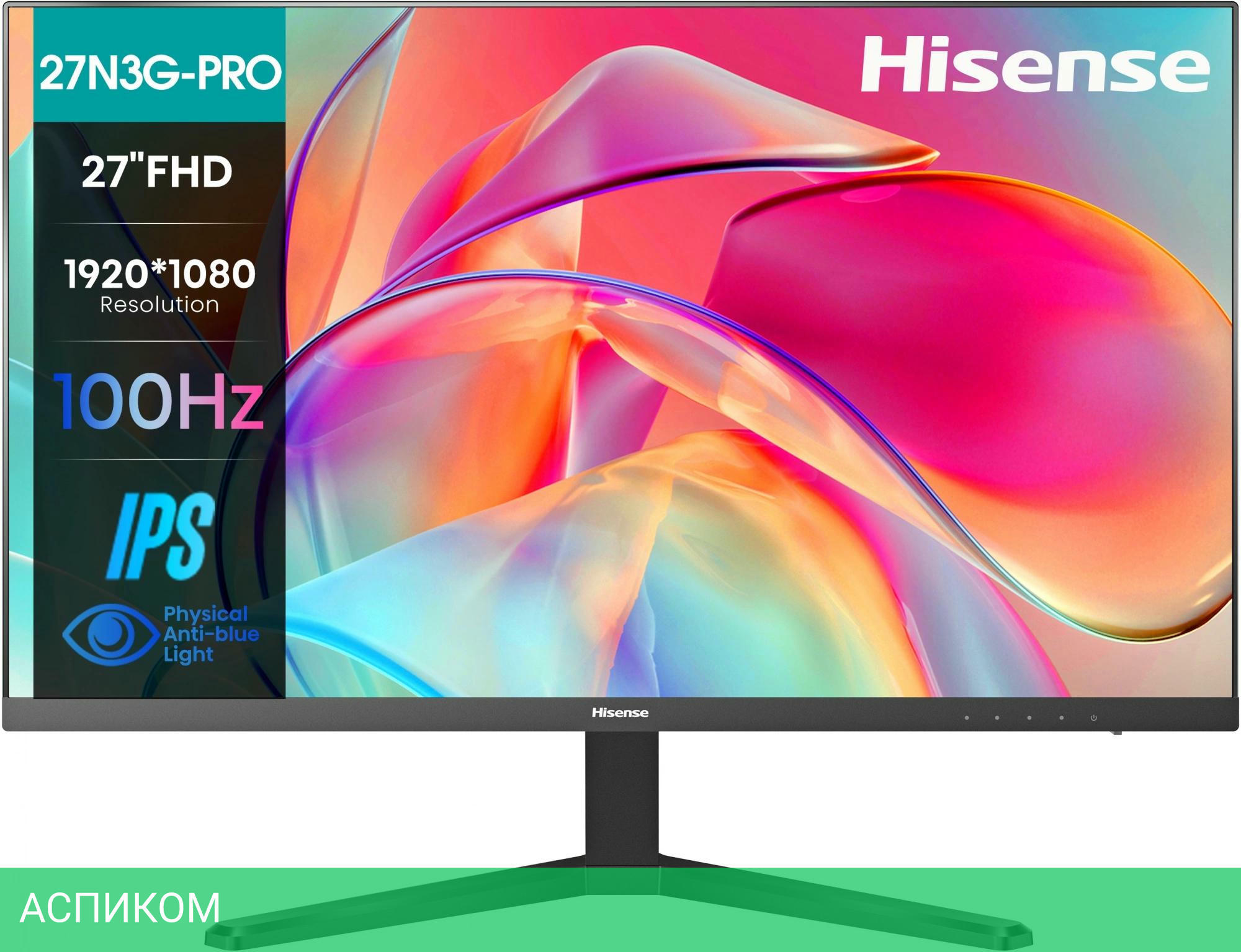 Монитор Hisense 27 27N3G-Pro черный/IPS/27″/16:9/1920x1080/100Hz/матовый/178гр/178гр/5ms/D-Sub (VGA)/HDMI/Adaptive-Sync/250cd/черный