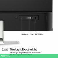 ✅ В плане подключения модель оснащена двумя HDMI 1.4 и одним VGA-портом, что обеспечивает совместимость с большинством современных компьютеров и ноутбуков. Внешний блок питания делает конструкцию монитора более легкой, а использование переработанных материалов и энергоэффективность подтверждена сертификатами EPEAT Silver и ENERGY STAR, что делает эту модель хорошим выбором для ответственных пользователей, заботящихся об экологии.