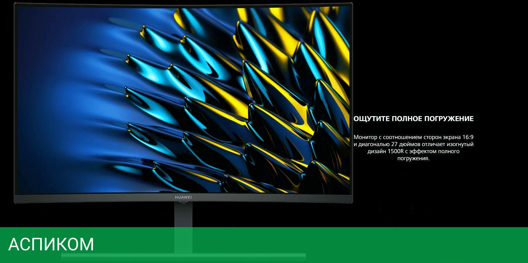 Монитор Huawei MateView XWU-CBA/VA/27″/16:9/2560x1440/165Hz/Curved/1500R/матовый/178гр/178гр/4ms/DisplayPort/HDMI/350cd/черный