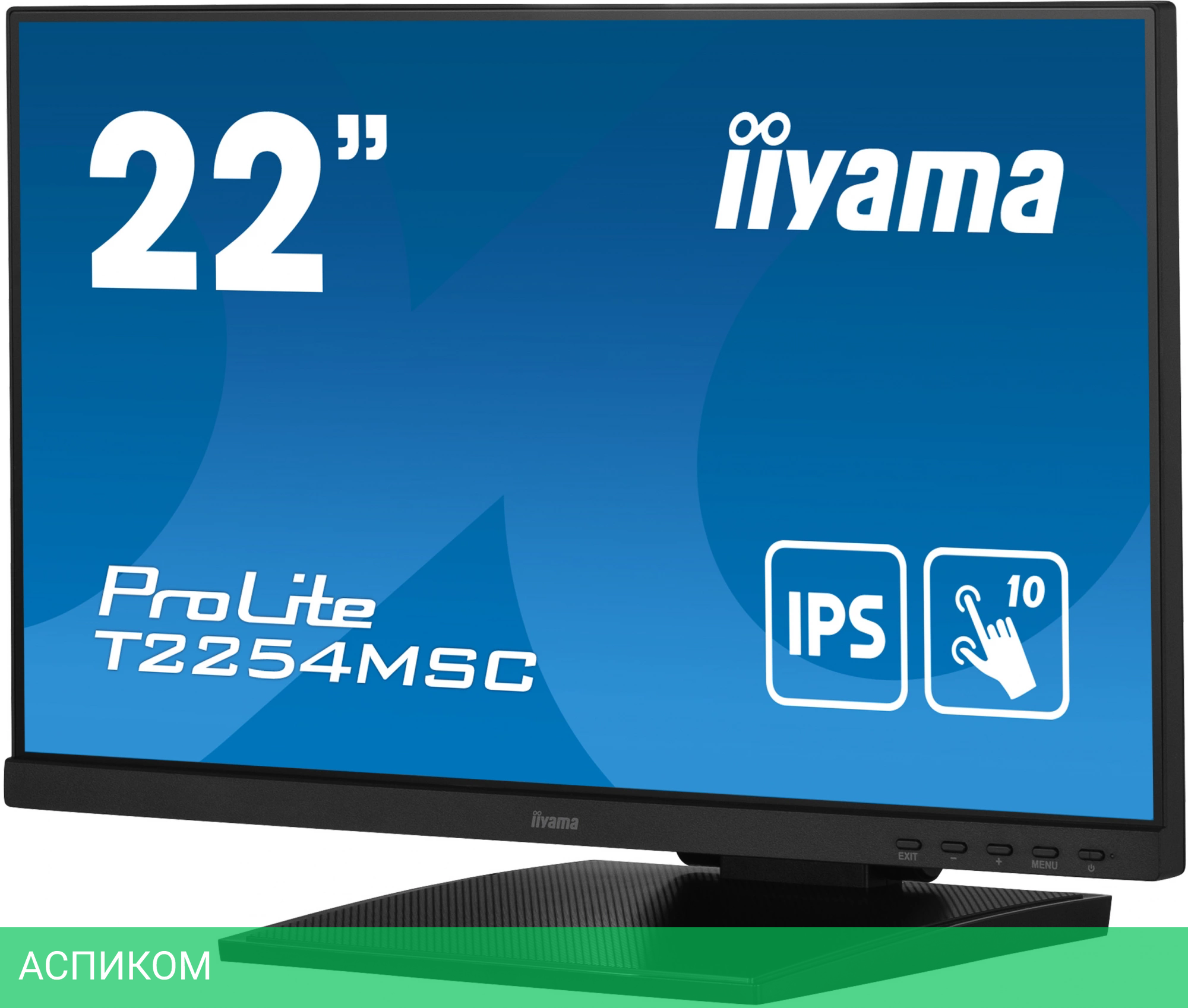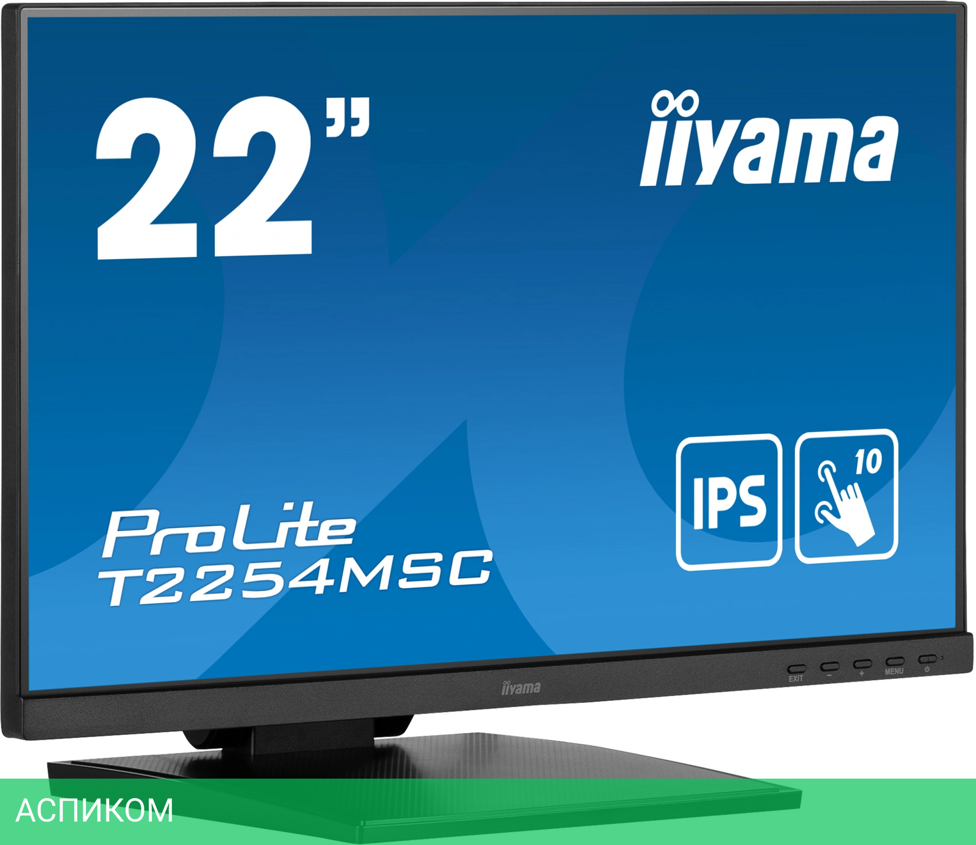 Монитор Iiyama ProLite T2254MSC-B1AG черный/IPS/21.5″/16:9/1920x1080/60Hz/глянцевый/178гр/178гр/4ms/DisplayPort/HDMI/250cd/черный