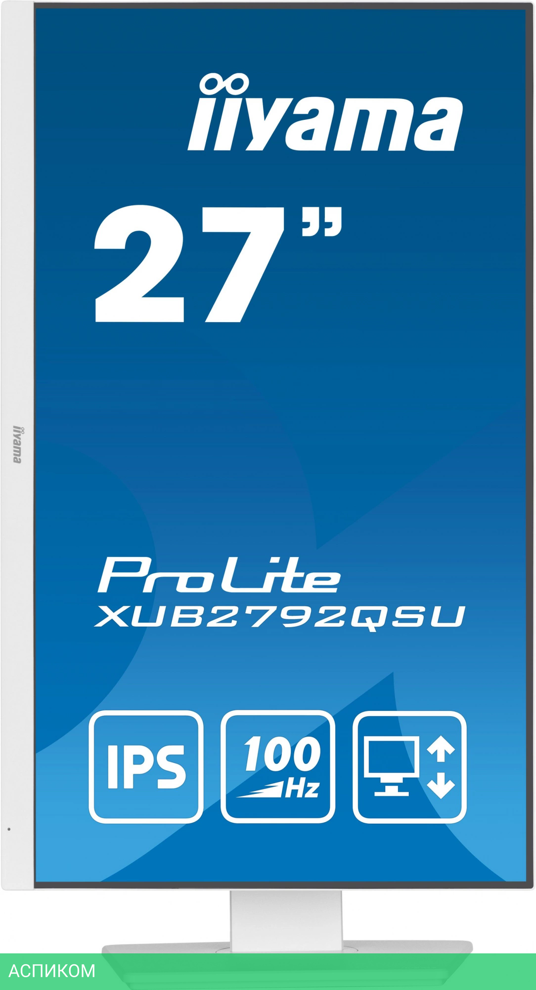 Монитор Iiyama ProLite XUB2792QSU-W6 белый/IPS/27″/16:9/2560x1440/100Hz/матовый/178гр/178гр/0.4ms/DisplayPort/HDMI/AMD FreeSync/250cd/белый