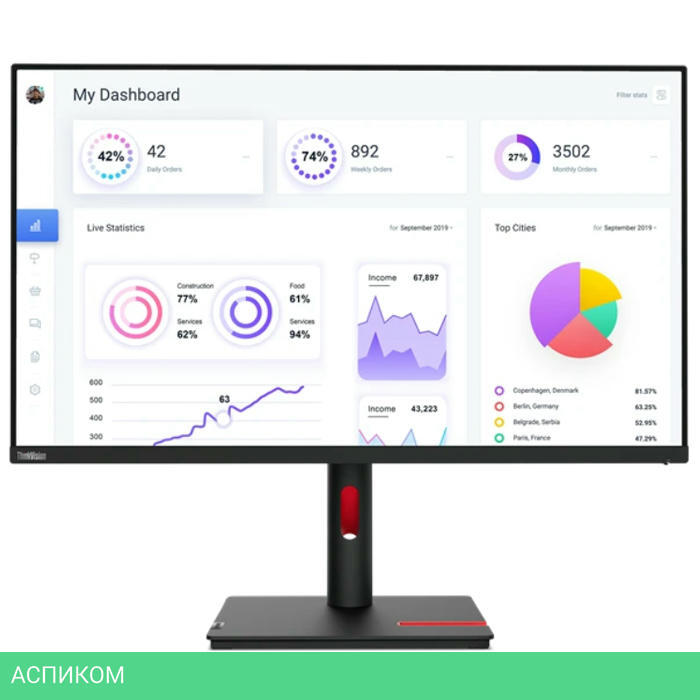 Монитор Lenovo 63D2GAT1EU/IPS/31.5″/16:9/3840x2160/60Hz/матовый/178гр/178гр/4ms/DisplayPort/HDMI/USB Type-A/USB Type-B/350cd/черный