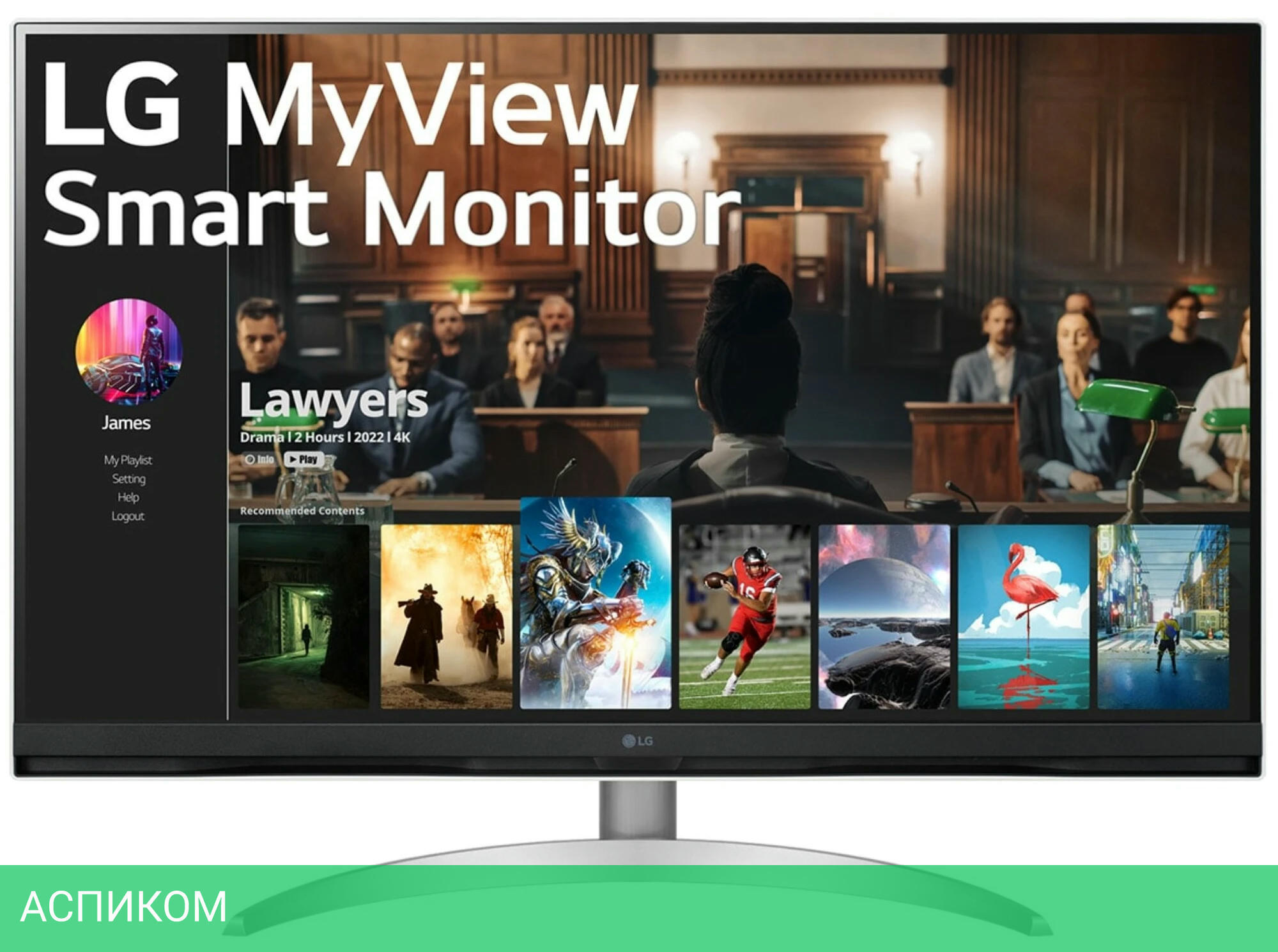 Монитор LG 32SQ700S-W белый/VA/31.5″/16:9/3840x2160/60Hz/матовый/178гр/178гр/5ms/HDMI/USB Type-C/250cd/белый