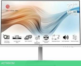 <p> 27", 1920x1080, 16:9, IPS, 75 Гц, глубина 8 бит, динамики, HDMI+DisplayPort+USB Type-C, питание по USB-C до 65 Вт, регулировка высоты, портретный режим </p>