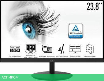 Для подключения к источникам видеосигнала монитор MSI PRO MP242 предлагает два интерфейса: HDMI и D-Sub.