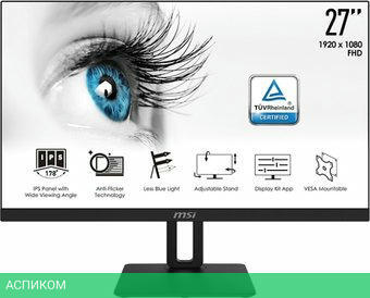 Монитор PRO MP271 наделен парой 2-ваттных динамиков, которые позволят прослушивать аудиофайлы, заниматься на онлайн-курсах или редактировать видеоролики без подключения внешней акустической системы или наушников.