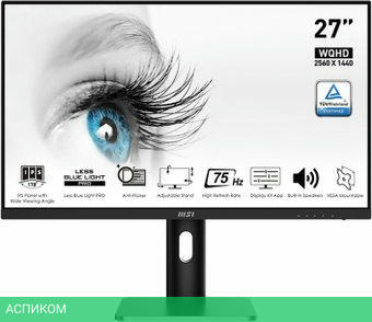 <p> 27", 2560x1440, 16:9, IPS, 75 Гц, глубина 6 бит + FRC, динамики, HDMI+DisplayPort, регулировка высоты, портретный режим </p>