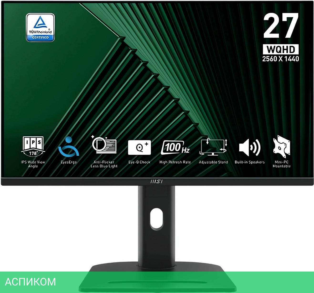 Монитор MSI Pro MP275QPG Black (9S6-3PC39M-069)/IPS/27″/16:9/2560x1440/100Hz/матовый/178гр/178гр/1ms/DisplayPort/Adaptive-Sync/300cd/черный