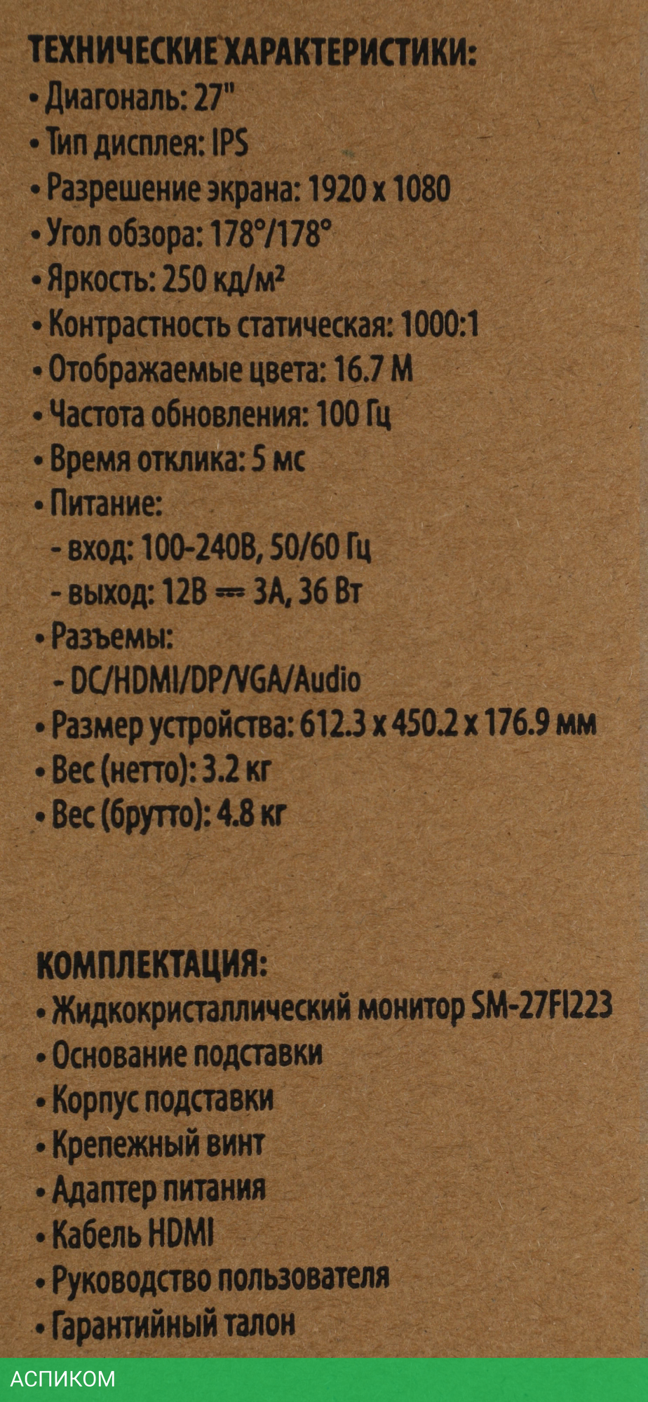 Размер крепления VESA