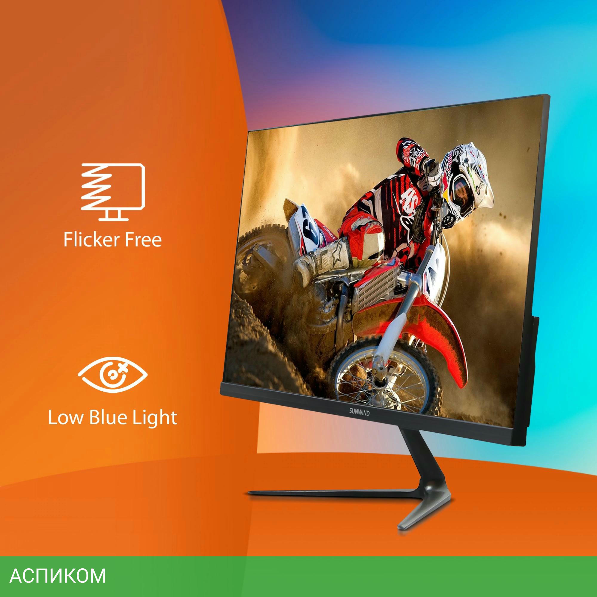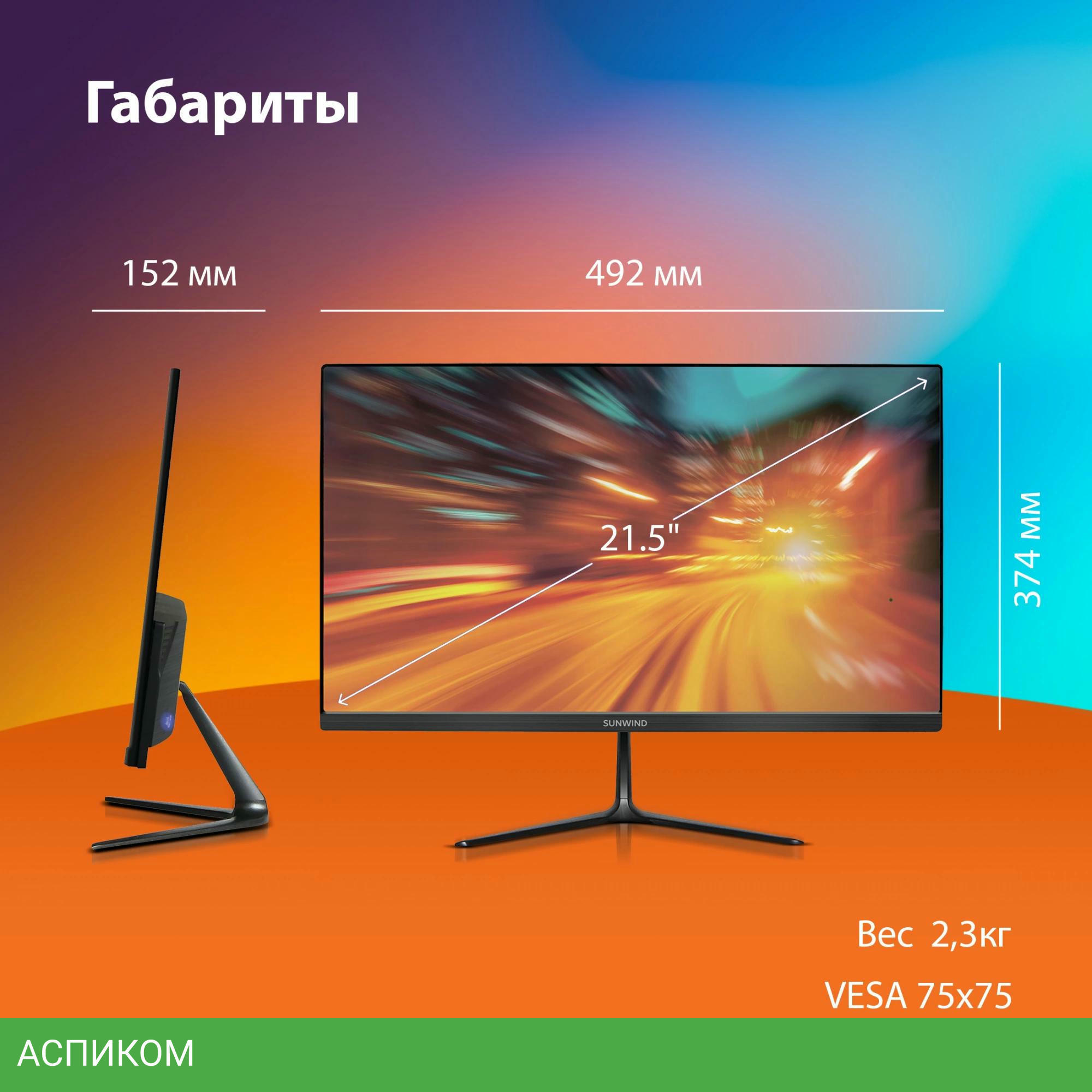 Монитор SunWind SM-22FV222 черный/VA/21.5″/16:9/1920x1080/100Hz/матовый/178гр/178гр/5ms/D-Sub (VGA)/HDMI/AMD FreeSync/250cd/черный